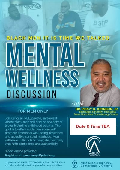 Join us for a FREE, private, safe event where black men will discuss a variety of topics including childhood trauma, work and family stress. The conversation will be guided by Dr. Percy D. Johnson, Jr., Marriage & Family Therapist at New Horizons Counseling Center.